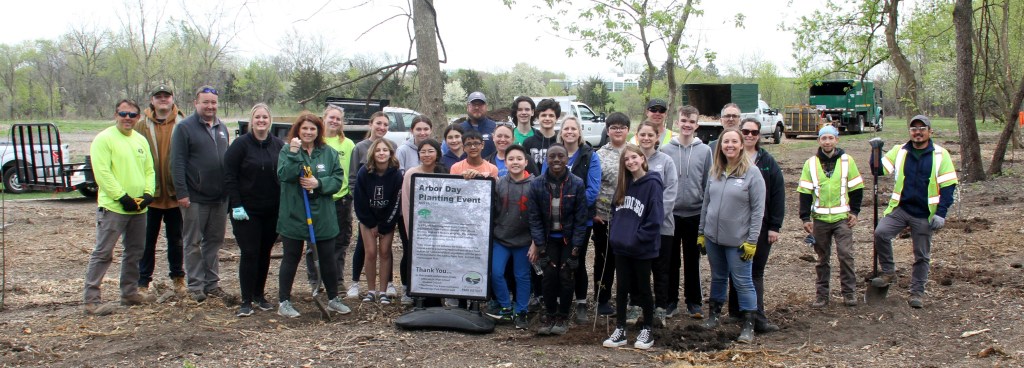 Above: Volunteers pose for a group shot at Jubilee Point Park in Woodridge Illinois. Local volunteers came from Jefferson Junior High School, Davey Tree Expert Company, and the Woodridge Park District.